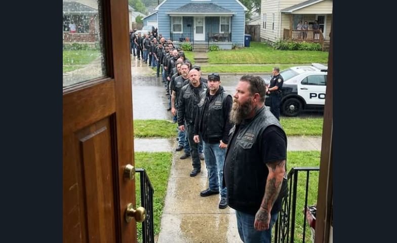 On a cold October evening in Dayton, Ohio, forty bikers stood motionless in the pouring rain outside a small blue house, and no one on