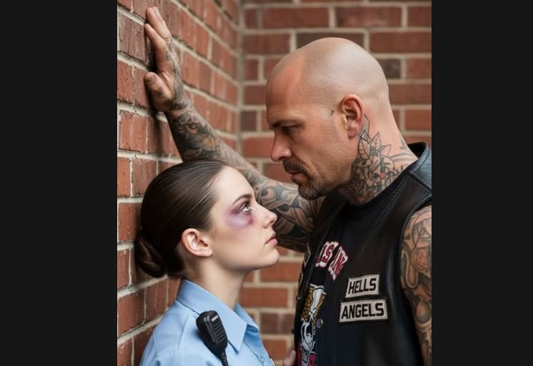 He shrugged out of his leather cut, the patches catching the streetlight—Hell’s Angels, Redwood Charter—and folded it carefully beneath her head. His hands moved with deliberate calm, practiced in a way that surprised even him.
