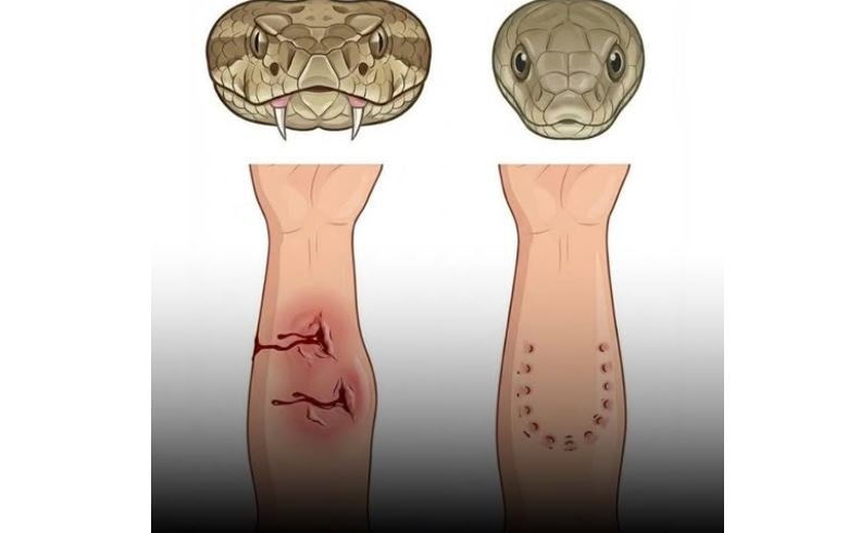Venomous bites can cause swelling, nausea, blurred vision, breathing difficulty, irregular pulse, abdominal pain, bleeding, or paralysis. Some bites appear minor, leaving only small puncture marks while serious symptoms develop later.