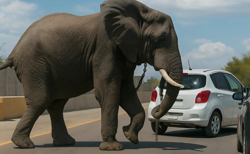 It was a scene of pure pandemonium on a sun-baked highway. A large elephant had wandered into the flow of traffic, and its behavior was