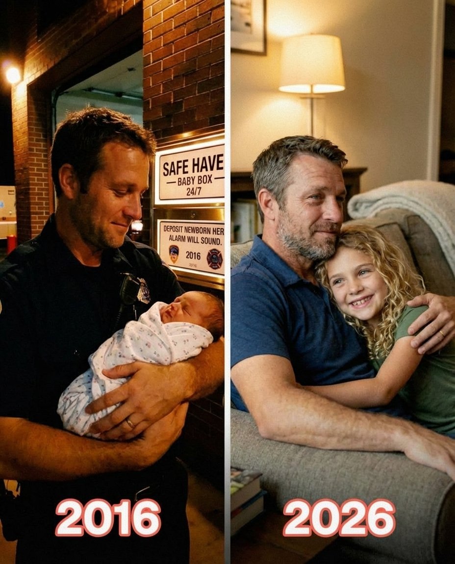 It started with a sound I’ll never forget—a sharp alarm in the middle of the night signaling that a newborn had been placed in the Safe Haven box at our firehouse. When I opened it, I found a baby girl wrapped carefully, calm and wide-eyed, as if she already trusted whoever would find her. In that quiet moment, something shifted in me. I called my wife, and within hours, we both knew this child might change our lives. What I didn’t know was that the decision made that night wasn’t random at all—and that a decade later, someone would show up with a story that would explain everything.