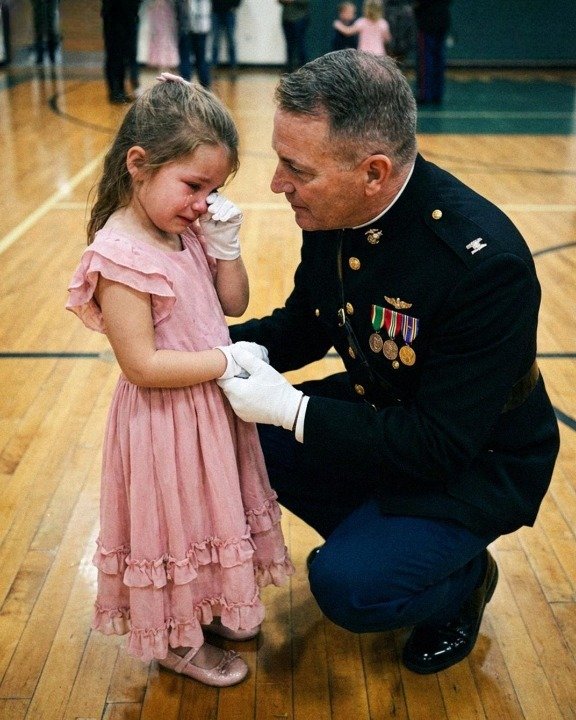 Grinning, the General bent down to look her in the eyes. “Katie, I did. Your dad was the lifeblood of our battalion, not just a Marine. He was often talking about you. He showed us all your sketches and photos that he kept in his locker.”