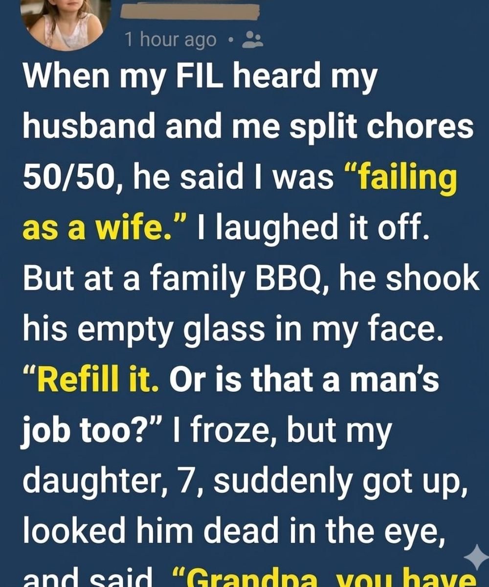 When my father-in-law heard that my husband and I shared household duties equally, he chuckled and said I was “not doing my job as a wife.” I didn’t respond—I let it pass. In our home, we value teamwork. We cook together, clean together, and raise our daughter side by side. To us, it feels right, even if others see it differently. Still, his words stayed in the back of my mind, quietly lingering.