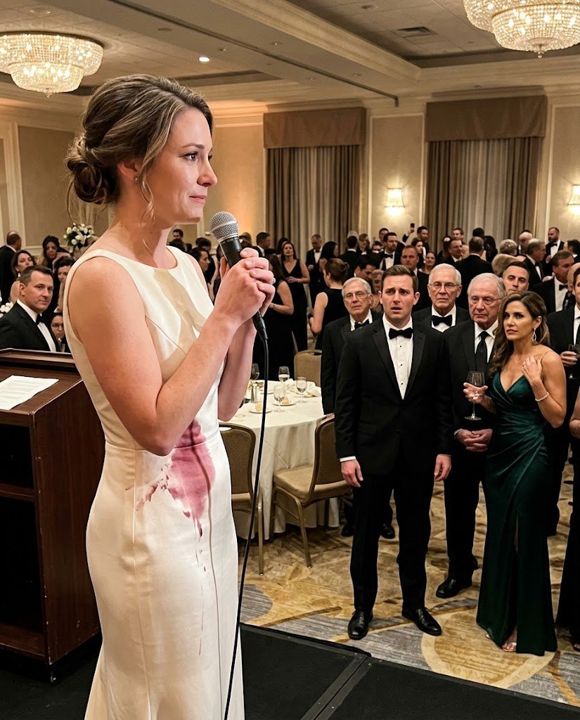 My white dress clung damply against my skin where Lucía’s red wine had soaked through it. The stain bloomed across the silk like an injury. Behind me, the event coordinator was still too startled to protest as I took the microphone from her hand. Ahead of me stood two hundred executives, investors, board members, and people who had spent their lives perfecting the art of polite cruelty.