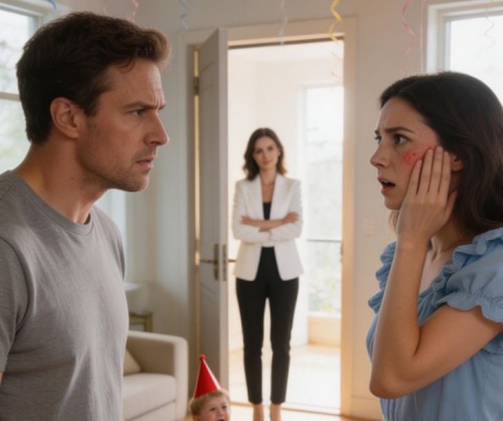 Before I could react, his hand struck my face. The sound was loud and final, echoing through the room. Pain exploded across my cheek. I tasted blood. Miles screamed and ran toward me, wrapping his arms around my waist as if his small body could shield mine.
