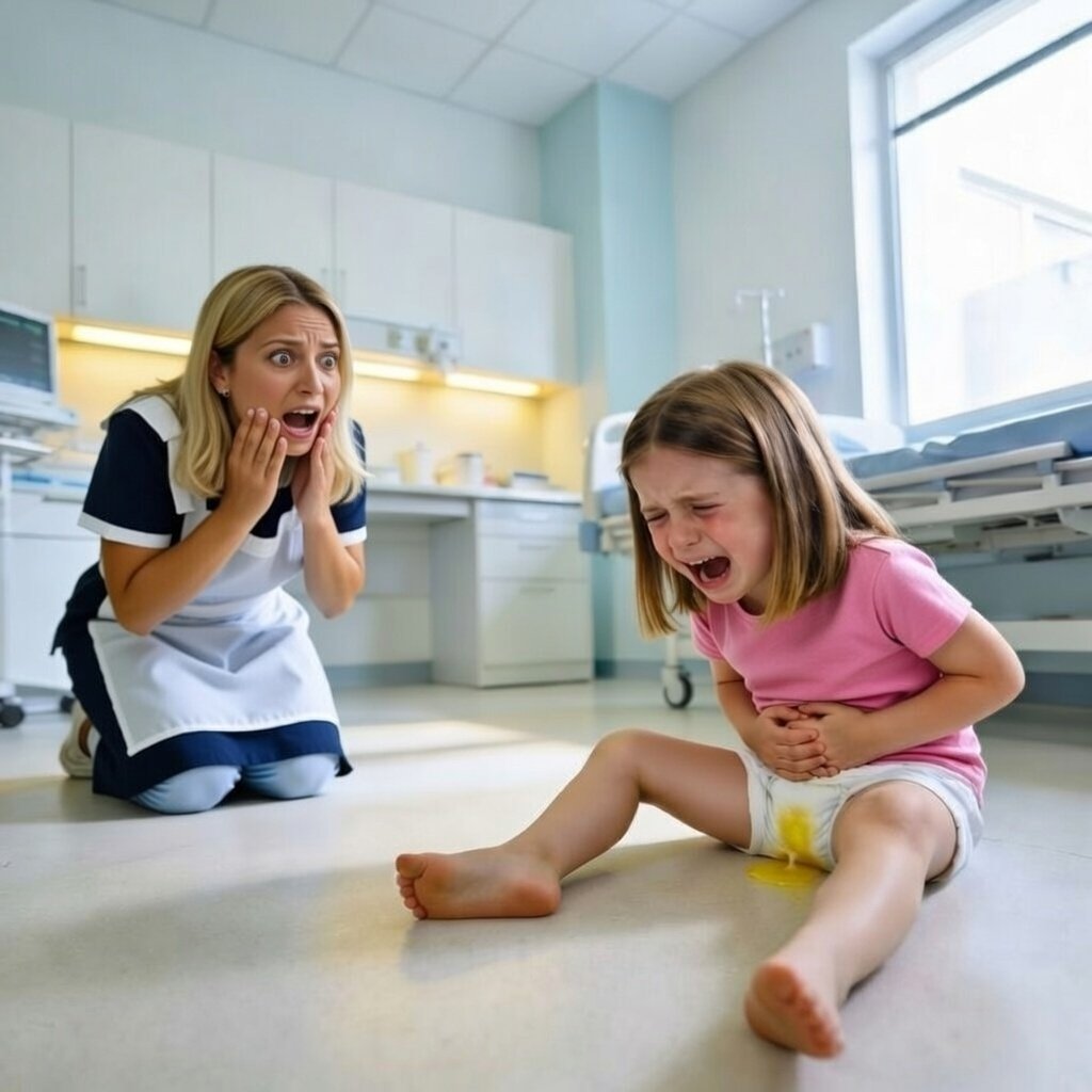 The girl couldn’t have been more than six. Thin. Pale. Her dark eyes were far too big for her face, carrying a fear that didn’t belong to someone so young. She lay stiffly, both arms wrapped around her stomach as if shielding herself from something invisible.