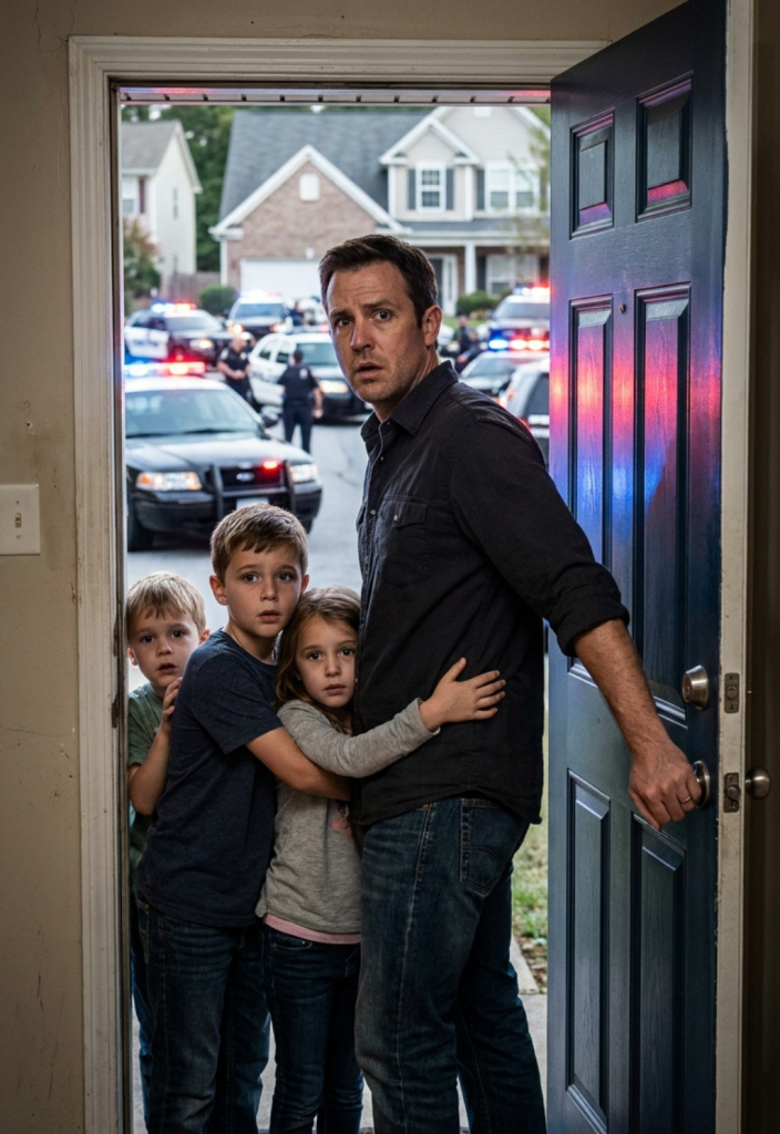 Ten patrol cars were parked across my lawn with their engines humming. My kids were already awake and crying, terrified by the sight of officers stepping out into the early mist.