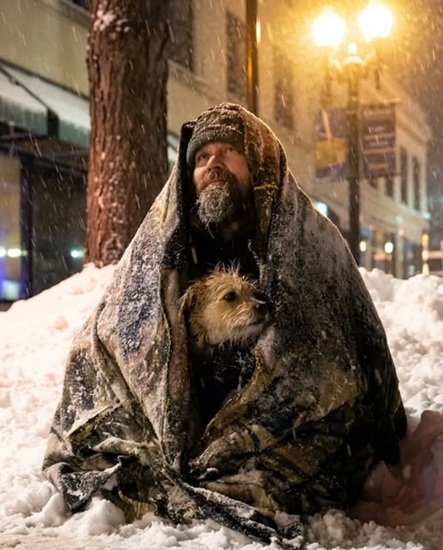 Fatigue tugged at my body insistently. As I walked past a small food stand glowing under the dim streetlight, I noticed a man standing nearby, clutching a small dog to his chest for warmth. The way they stood together made me pause.