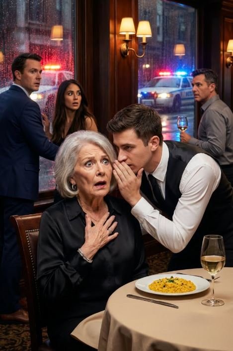 I was having dinner at an upscale restaurant with my daughter and her husband. After they left, the waiter leaned down and whispered something that made me freeze in my seat. Moments later, flashing blue and red lights filled the windows outside…