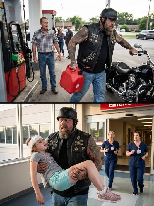 I watched a biker snatch the gas can I had just bought without a word, but later that afternoon, a hospital called—and suddenly that moment didn’t look the same anymore.
