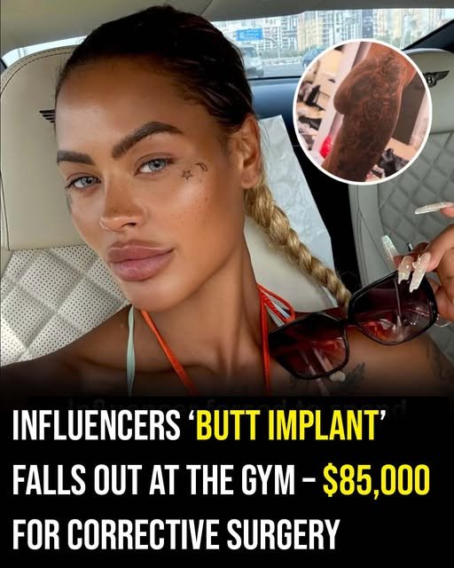 The situation escalated when a butt implant reportedly shifted during a routine gym session.