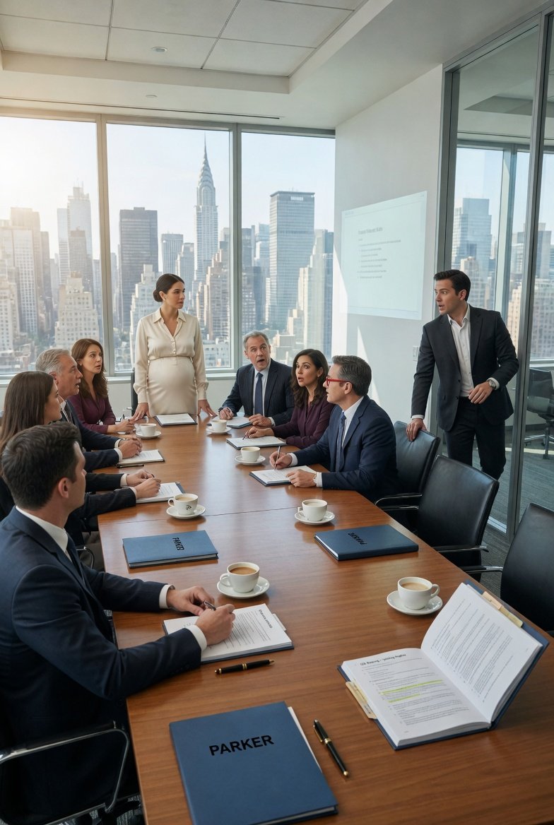 He buttoned his jacket, looked past him, and said, ‘Ms. Parker, as majority voting shareholder, the board is ready for your recommendation.’