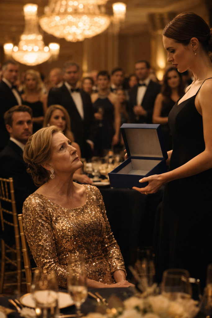 That is what I learned the night I stood in a country club ballroom with a navy-blue box in my hands.