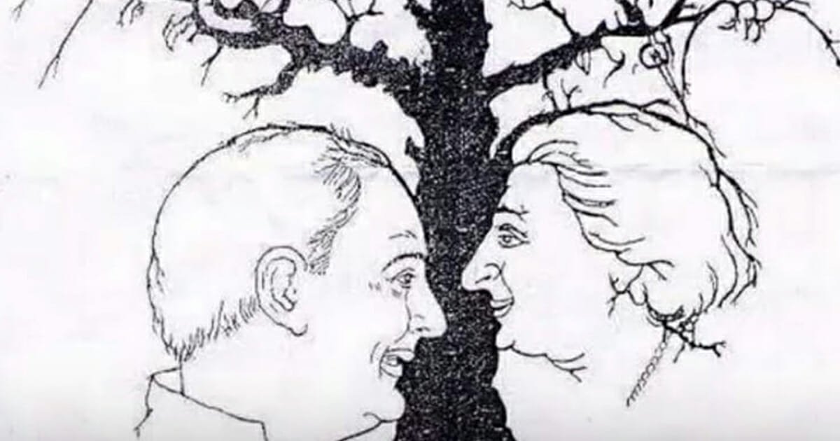 Stare long enough at the old illustration and the bark stops being bark; it turns into cheeks, foreheads, noses that peek between twisted roots and