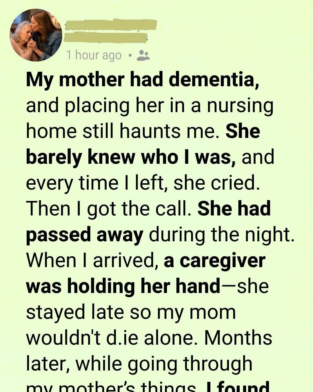 Not because it erased my guilt—but because it reminded me that even when I couldn’t be there, my mother was never truly alone.