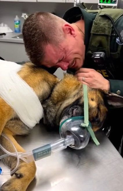 The aftermath was a whirlwind of duty and devotion. With the suspect secured, Lawson’s world narrowed to one mission: saving Titan. He carried his wounded partner, ignoring procedure, and sped to the nearest animal trauma center. In that vehicle, the siren wasn’t just for traffic; it was the sound of a heart breaking and fighting to stay whole. The deputy who was trained for control could only plead with his dog to hold on.